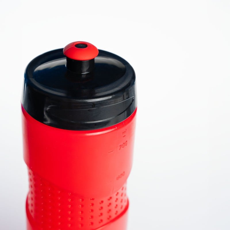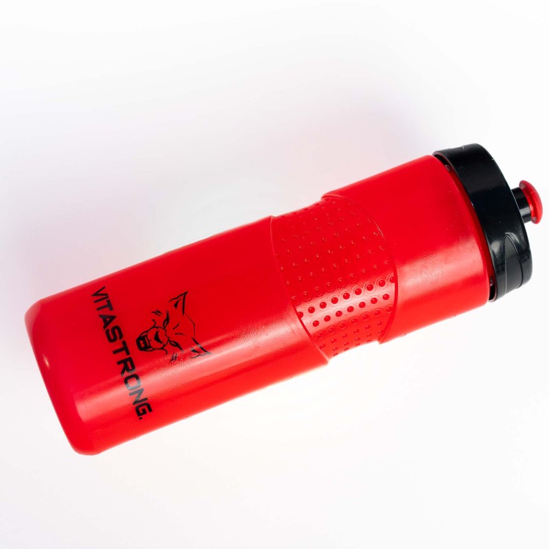 Con su diseño ergonómico y su capacidad de 750 ml, la botella Vitastrong Endurance te asegura un suministro constante de líquidos durante tus sesiones de entrenamiento más intensas. La combinación de boquilla roja y gorra negra le da un aspecto deportivo y atrevido, perfecto para quienes quieren destacar.