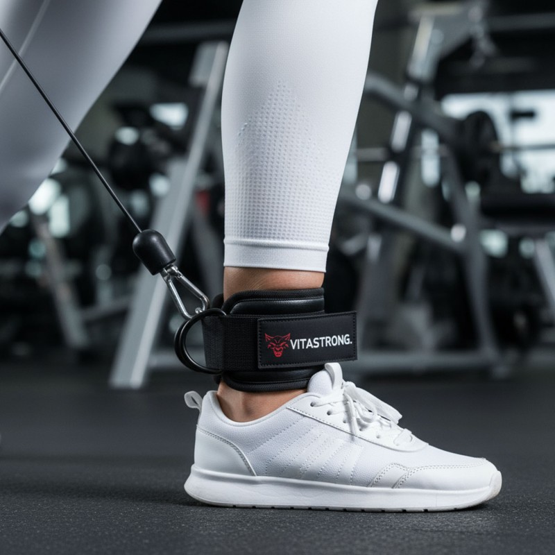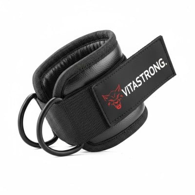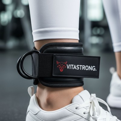 Los soportes de tobillo Vitastrong están diseñados con material de cuero para brindar máxima comodidad y estabilidad durante los ejercicios con máquina de cable, ayudándole a realizar movimientos específicos de manera segura y eficaz.