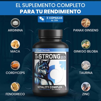 T-Strong 2.0 es un suplemento avanzado diseñado para quienes desean apoyar la vitalidad, la energía y el bienestar físico. Su fórmula combina ingredientes naturales con propiedades adaptogénicas y energizantes, contribuyendo al metabolismo hormonal normal y a la regulación de la testosterona.