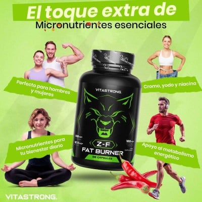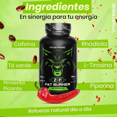 Vitastrong ZF es un suplemento útil para estimular el metabolismo y formulado para ayudarle a alcanzar sus objetivos de peso y fitness. Gracias a una combinación única de ingredientes naturales, como la cafeína, el mate, el café verde y el chile picante, el producto estimula el metabolismo, favoreciendo el equilibrio del peso corporal.