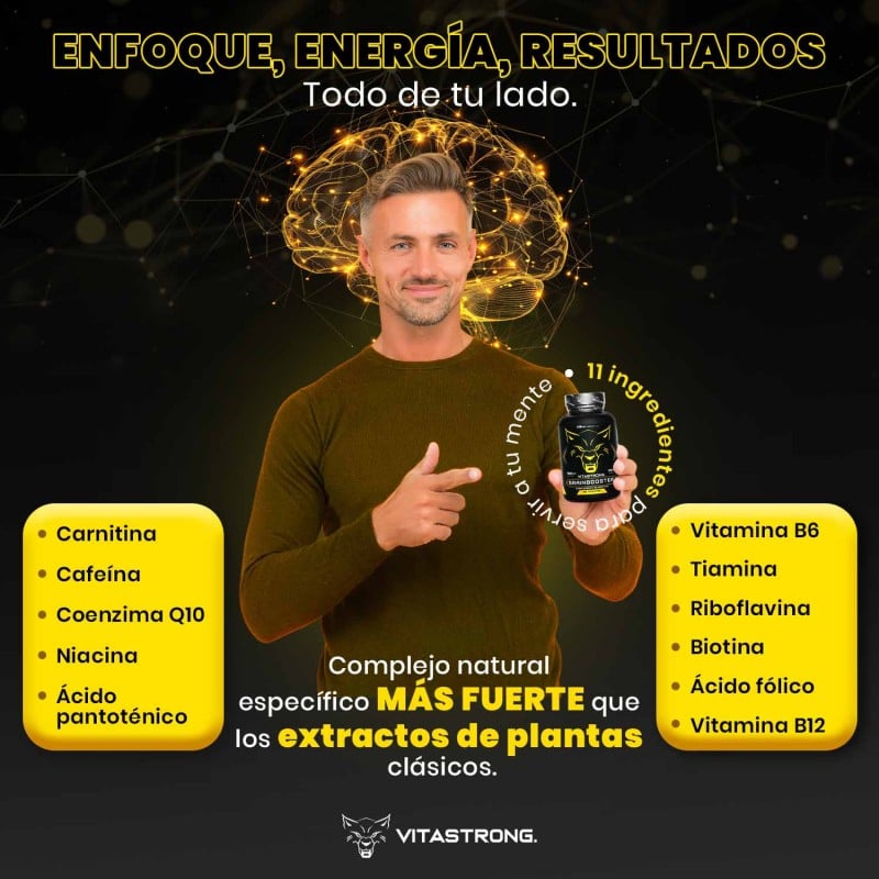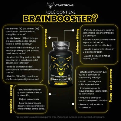 VitaStrong Brainbooster® es un complemento natural que contribuye al normal rendimiento mental, relacionado con una buena eficiencia de la memoria , la concentración y las capacidades cognitivas .