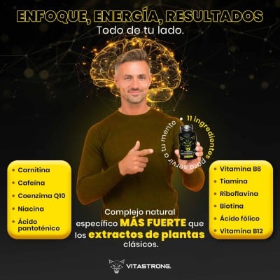 Su fórmula equilibrada no solo estimula: también favorece el metabolismo energético y protege las células del estrés oxidativo gracias a la coenzima Q10 y las vitaminas del grupo B. Tanto si trabajas, estudias o entrenas, VITASTRONG BRAINBOOSTER es tu aliado para un rendimiento físico y mental óptimo.