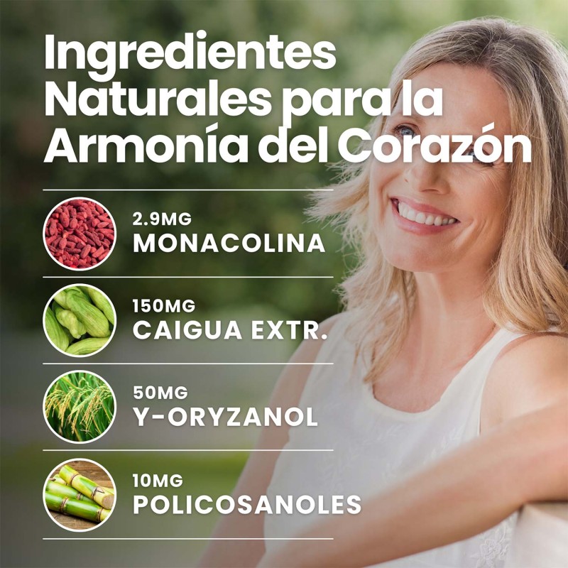 Este producto combina la acción tradicional del arroz rojo fermentado con ingredientes innovadores como la Coenzima Q10 y el extracto de Caigua para ofrecer un enfoque completo y natural. Ideal para quienes desean ayuda natural en el control de los niveles de colesterol y azúcar en sangre, sin comprometer la calidad.